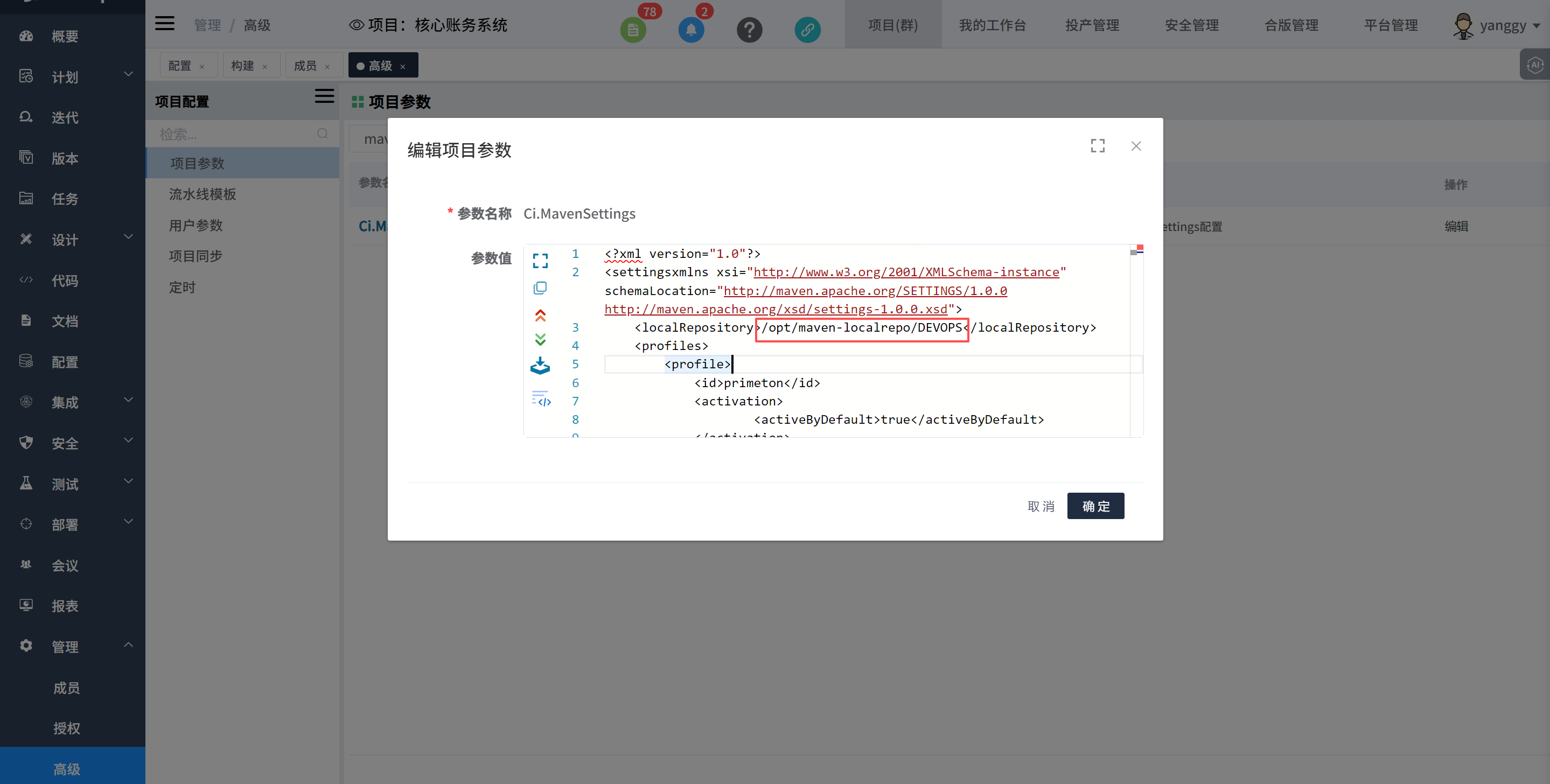 不在原子任务中配置,也可以在项目参数或平台参数中配置,加载优先顺序为:原子任务中配置 > 项目参数 > 平台参数。如果都没有配置,则使用jenkins安装的maven默认setting.xml文件。