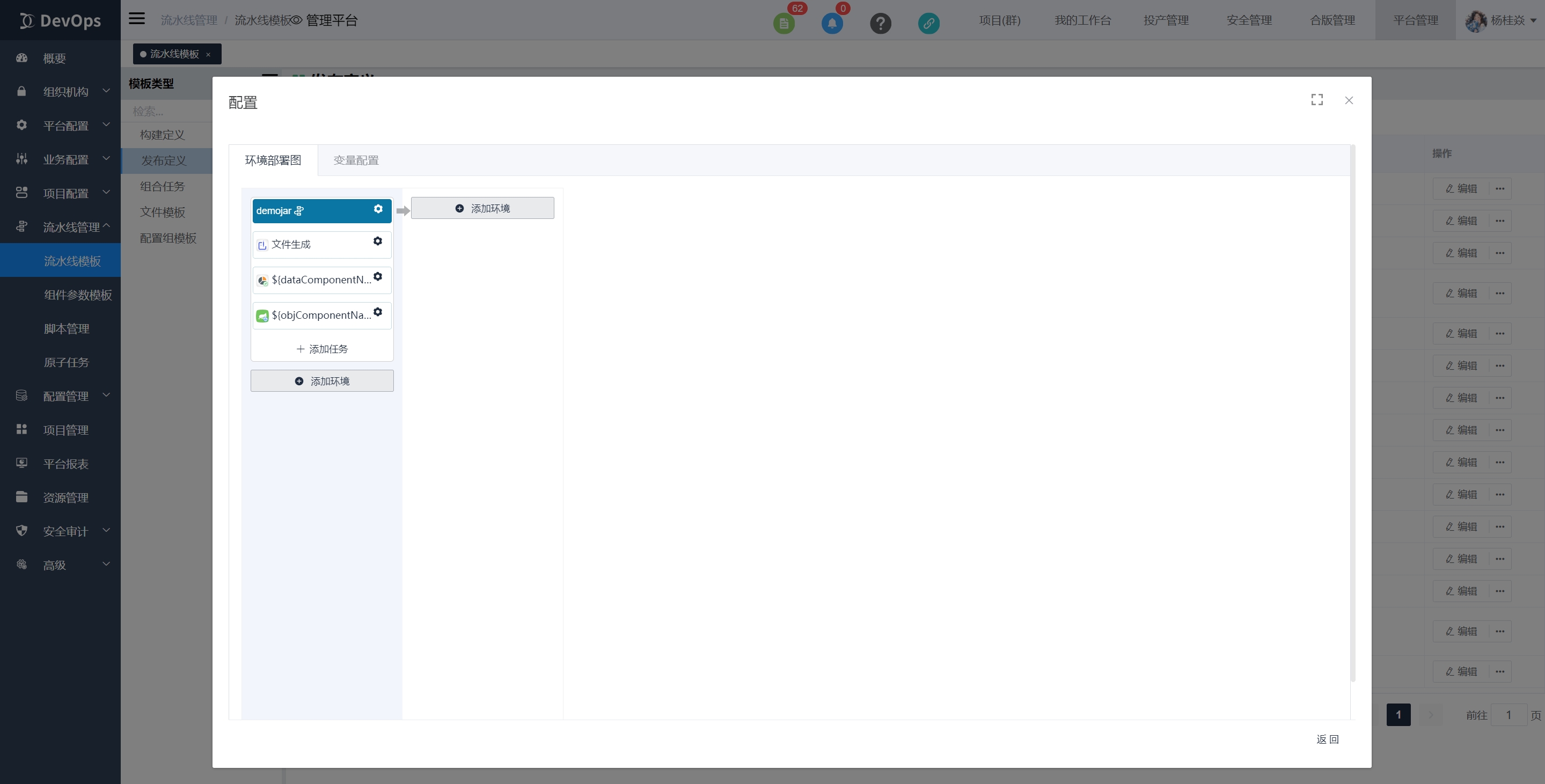 说明: 1.项目级模板转平台级模板时,会置空模板历史记录。 2.项目级模板转平台级模板时,会置空所有变量值。 3.模板编辑不允许对配置项的值赋值。
