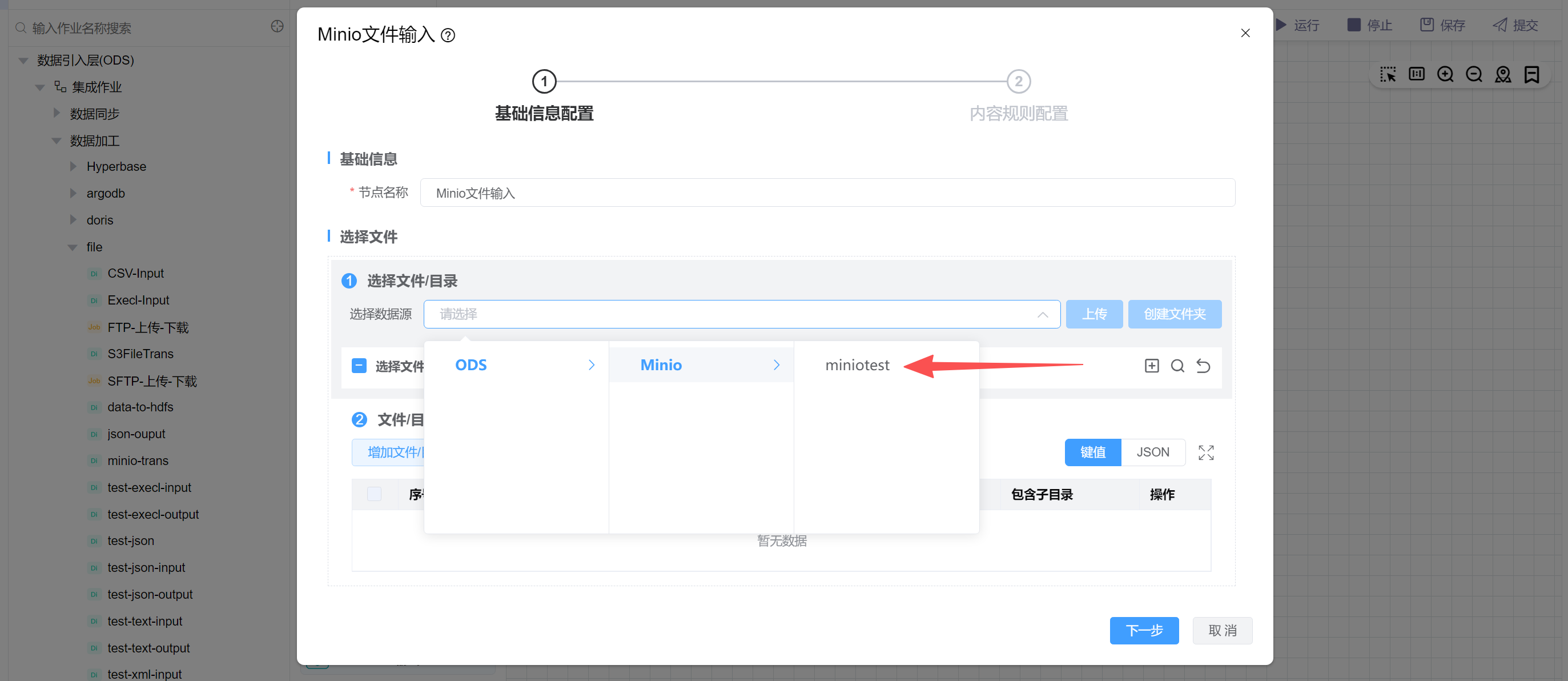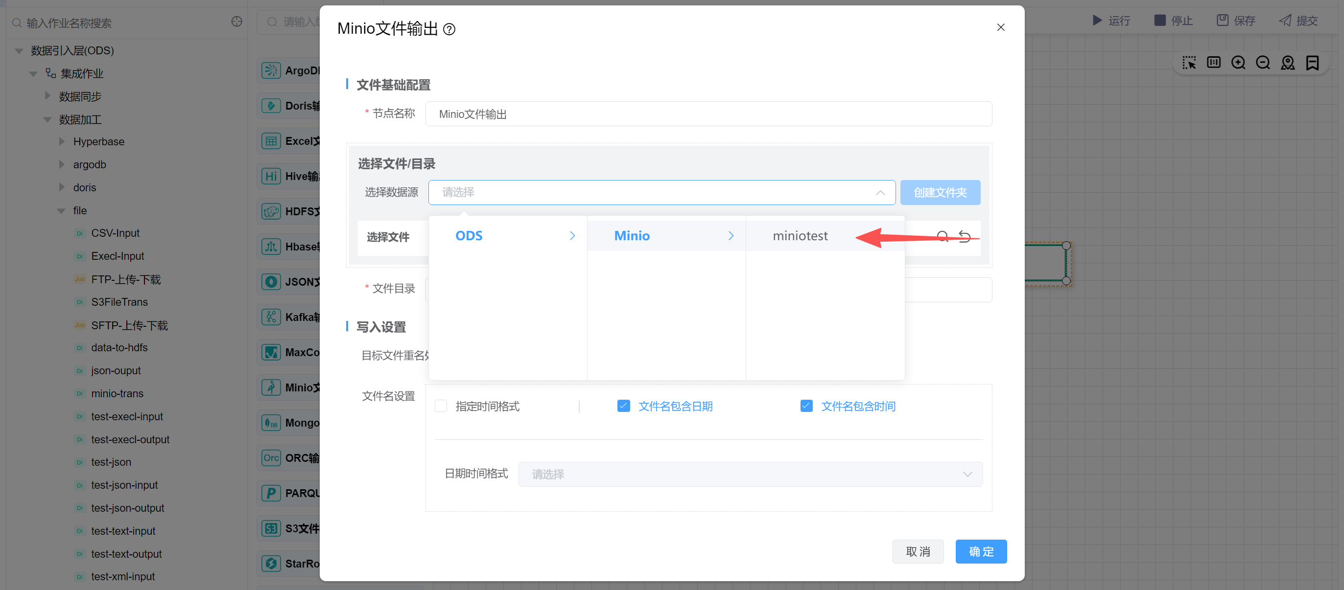 点击“选择数据源”,选择Minio数据源: