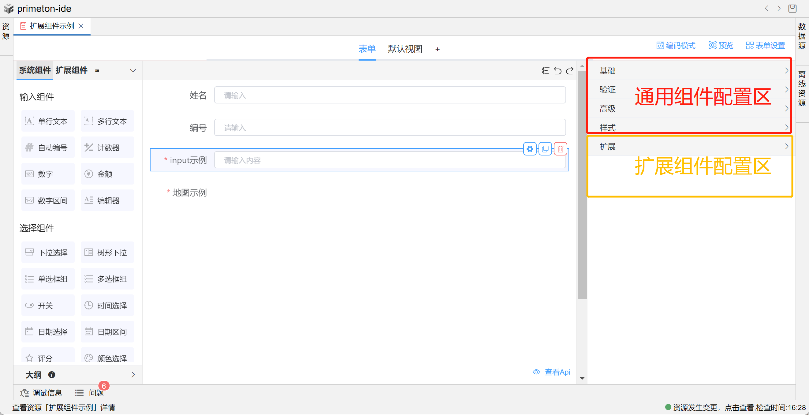 IDE表单开发页面组件可使用组件开发框架进行自定义开发。