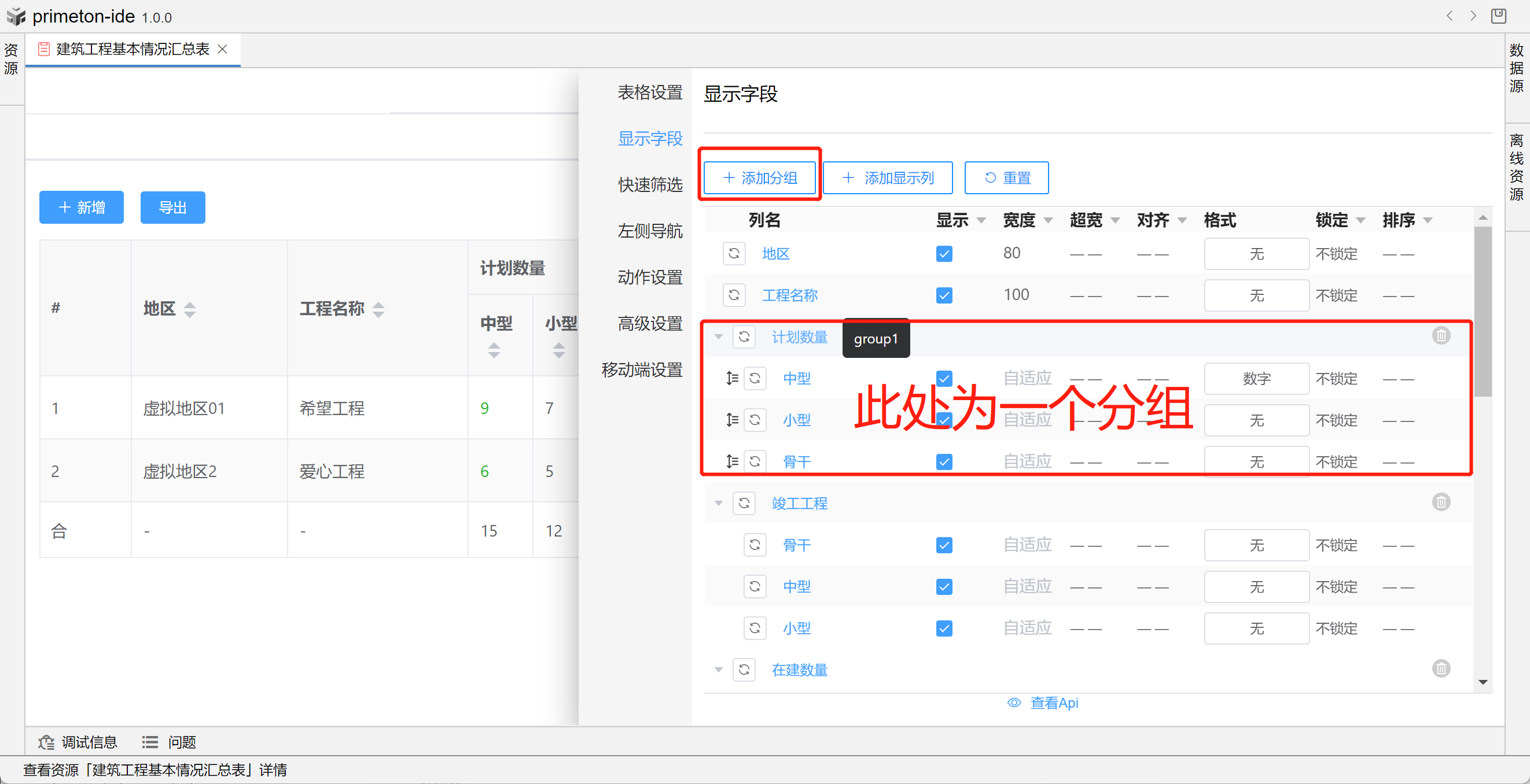 - 分组操作:可通过点击列名进行组名修改和删除分组