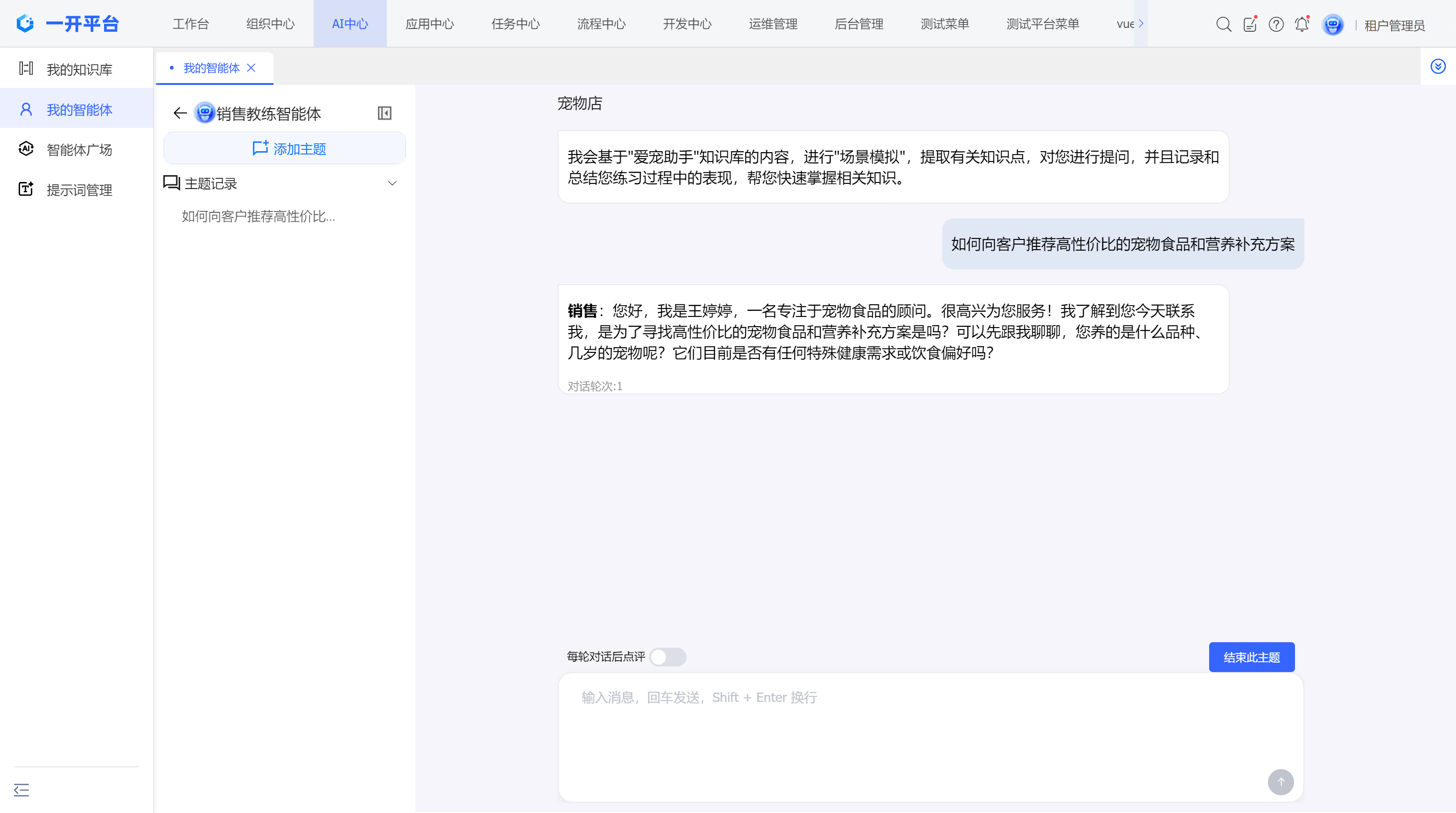 - 点击目标智能体卡片的【对话】按钮,立即开启训练