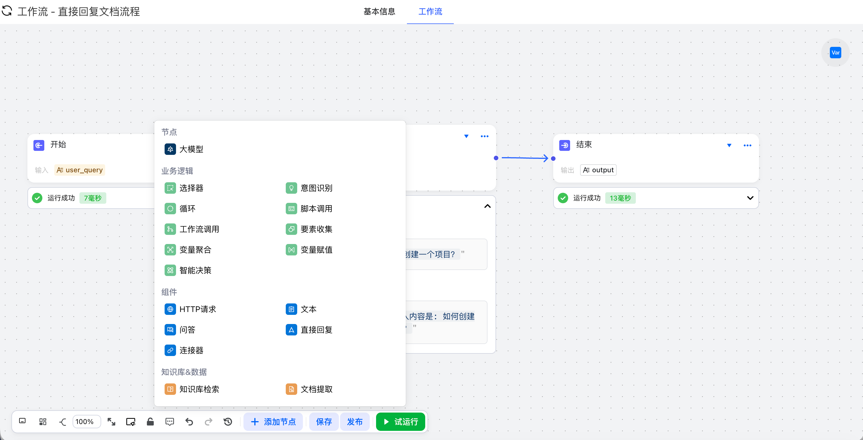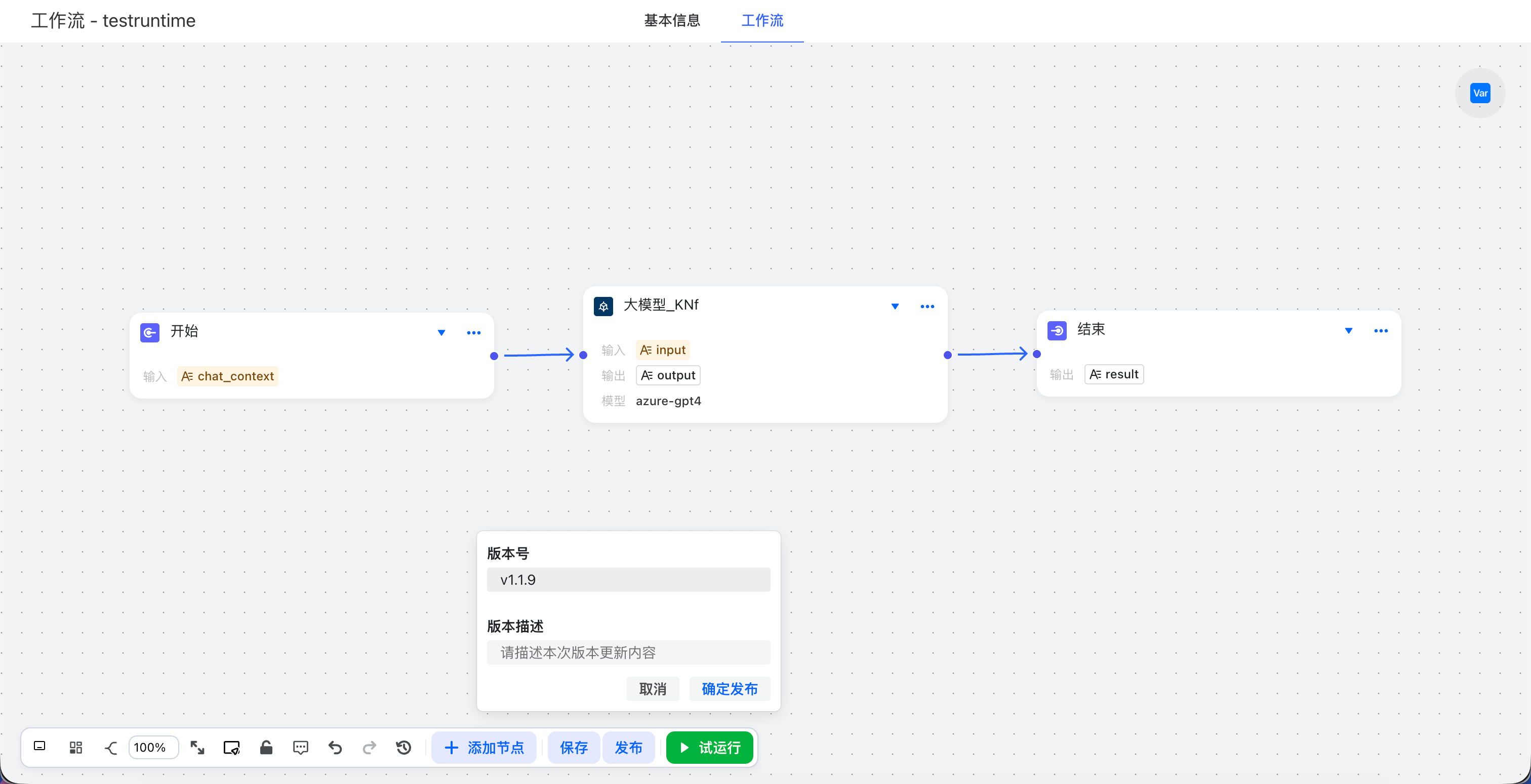- 点击试运行,检查工作流是否能按预期执行。