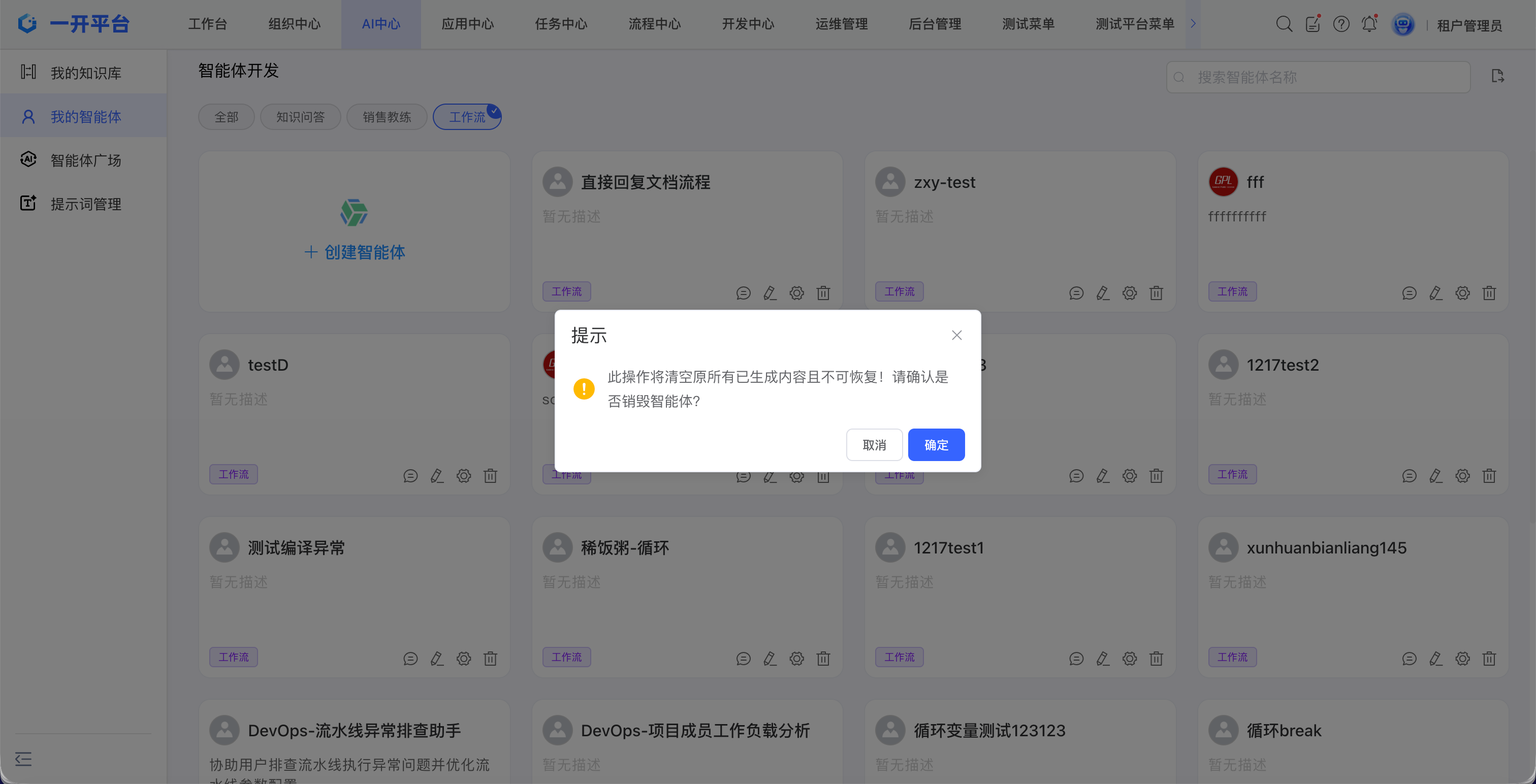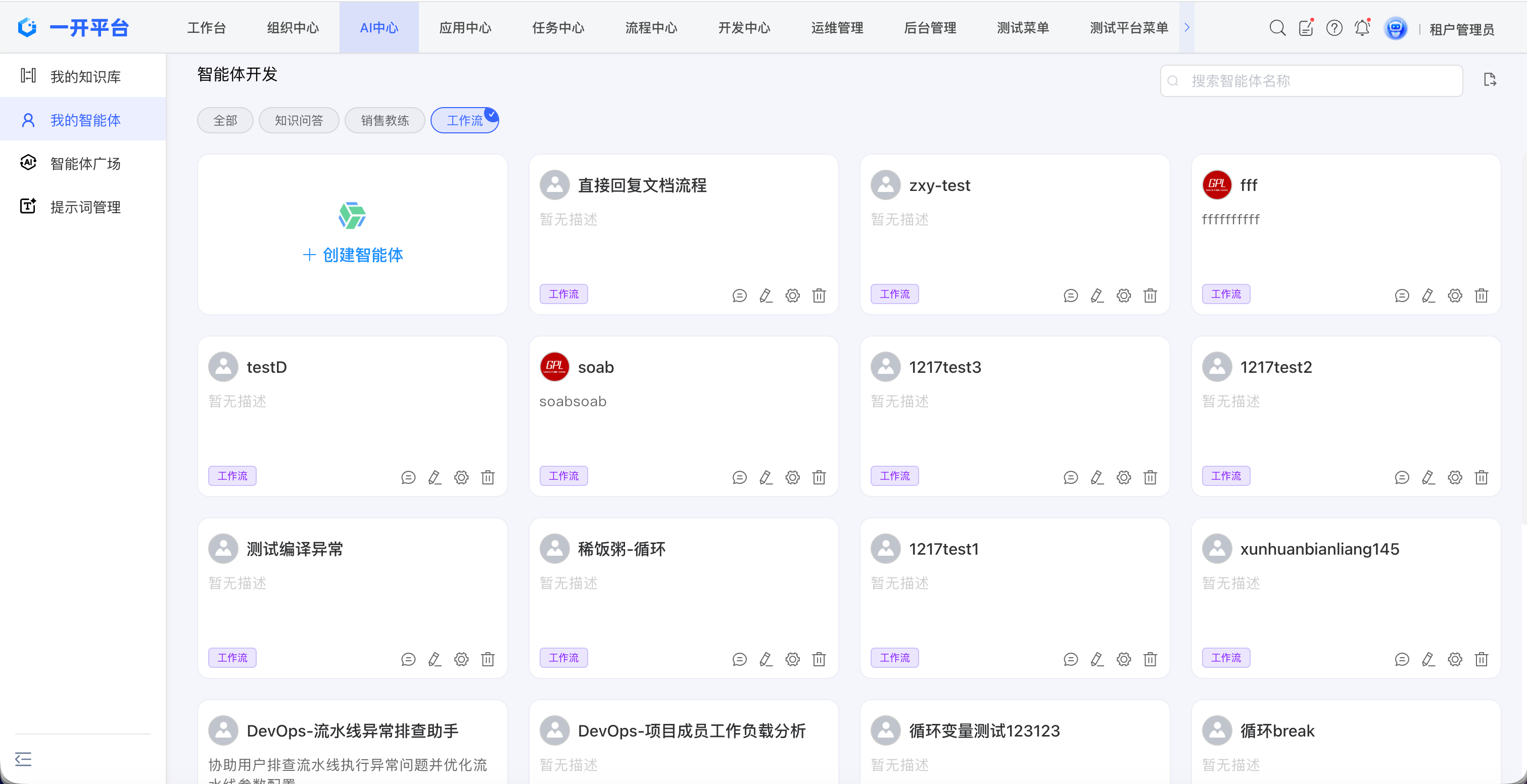 对于不再需要的工作流,你可以在工作流列表中找到它,并在智能体卡片操作区点击删除图标。