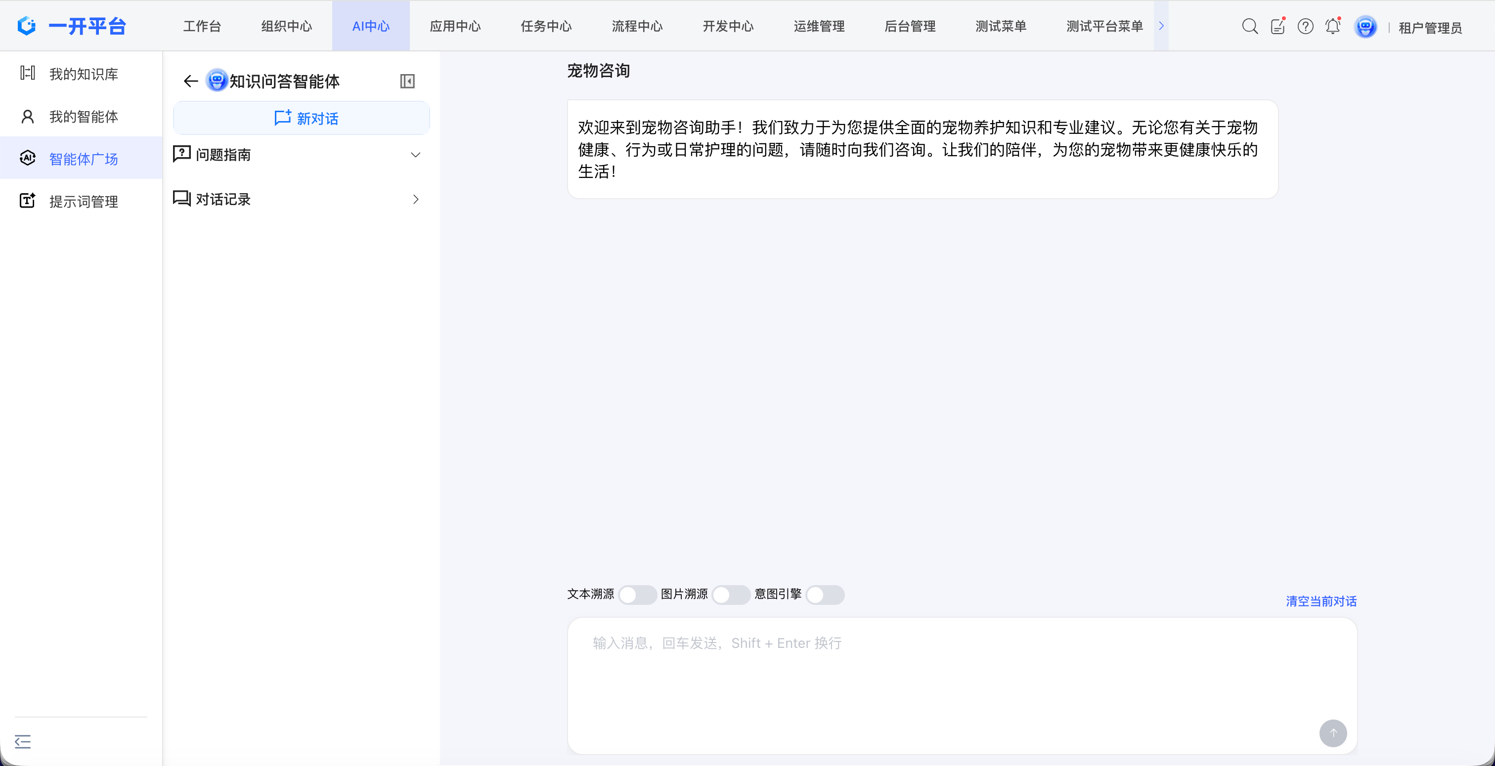 进入智能体广场菜单,点击需要的智能体卡片,进入交互界面。