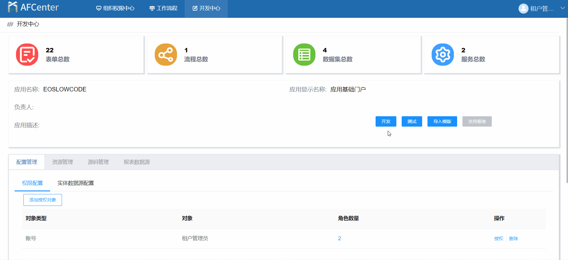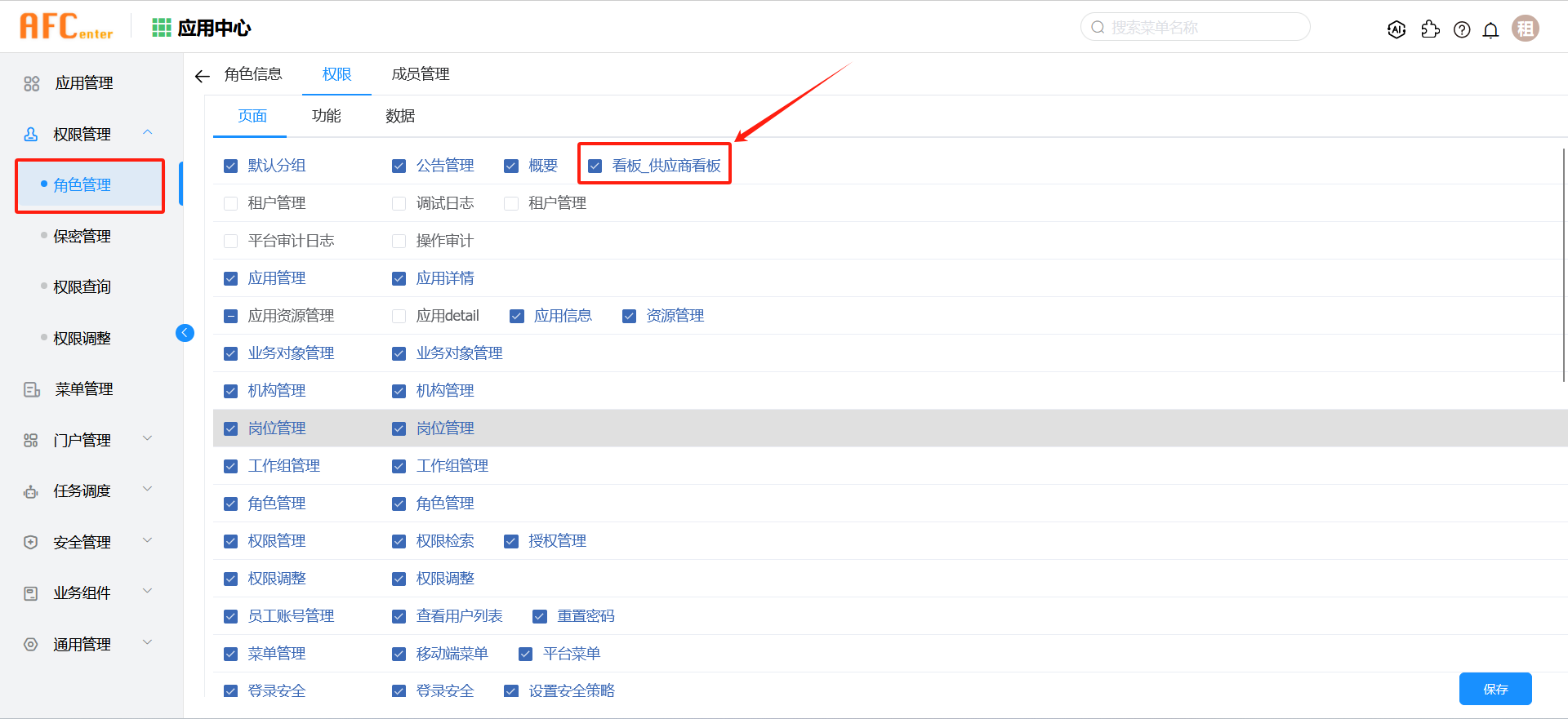 在应用中心-权限管理-角色管理界面中,为角色授权。