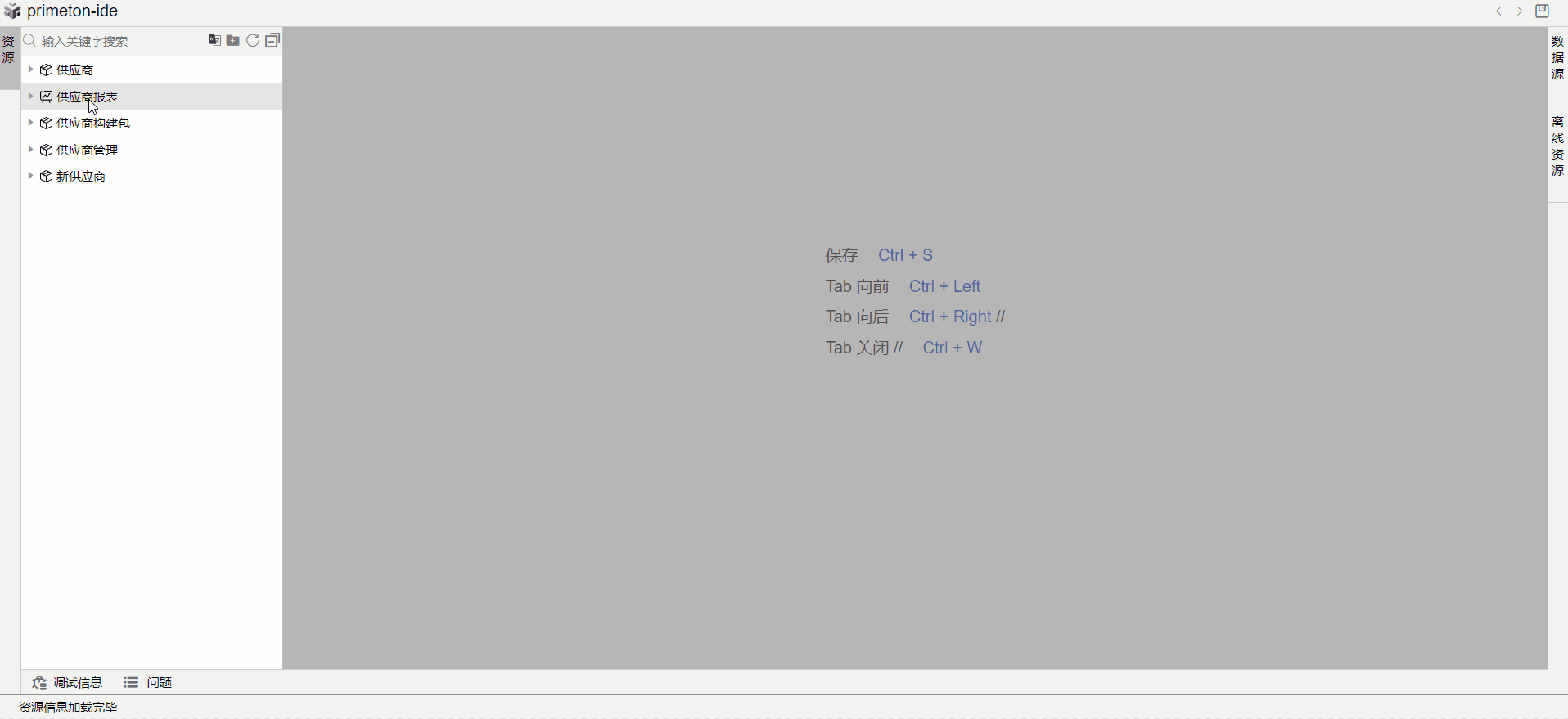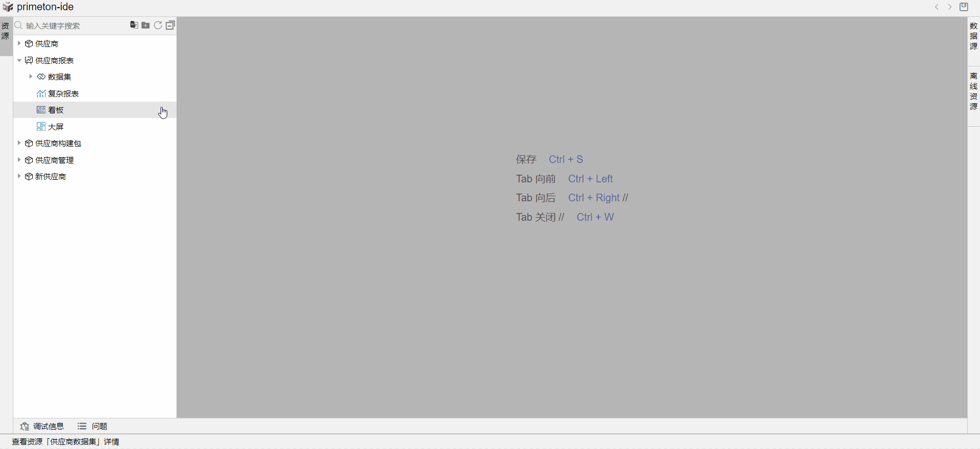 打开供应商报表构件包,新建数据集。