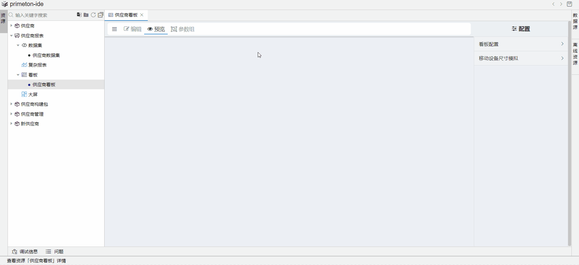 打开供应商报表构件包,新建看板,输入编码和名称,点击创建。