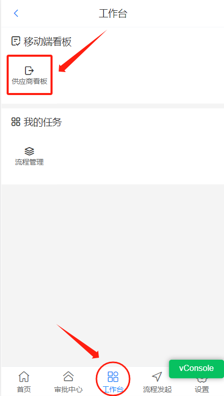登陆后进入工作台,点击供应商看板,看板即可在移动端展示。