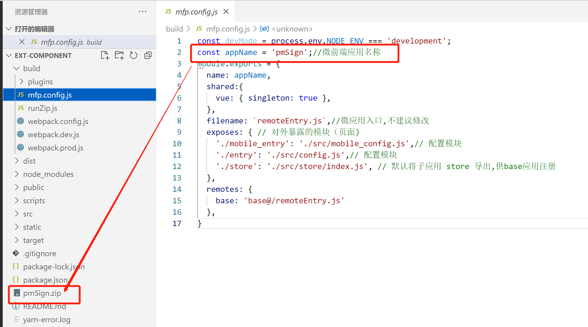 - build/mfp.config.js配置打包文件的名字