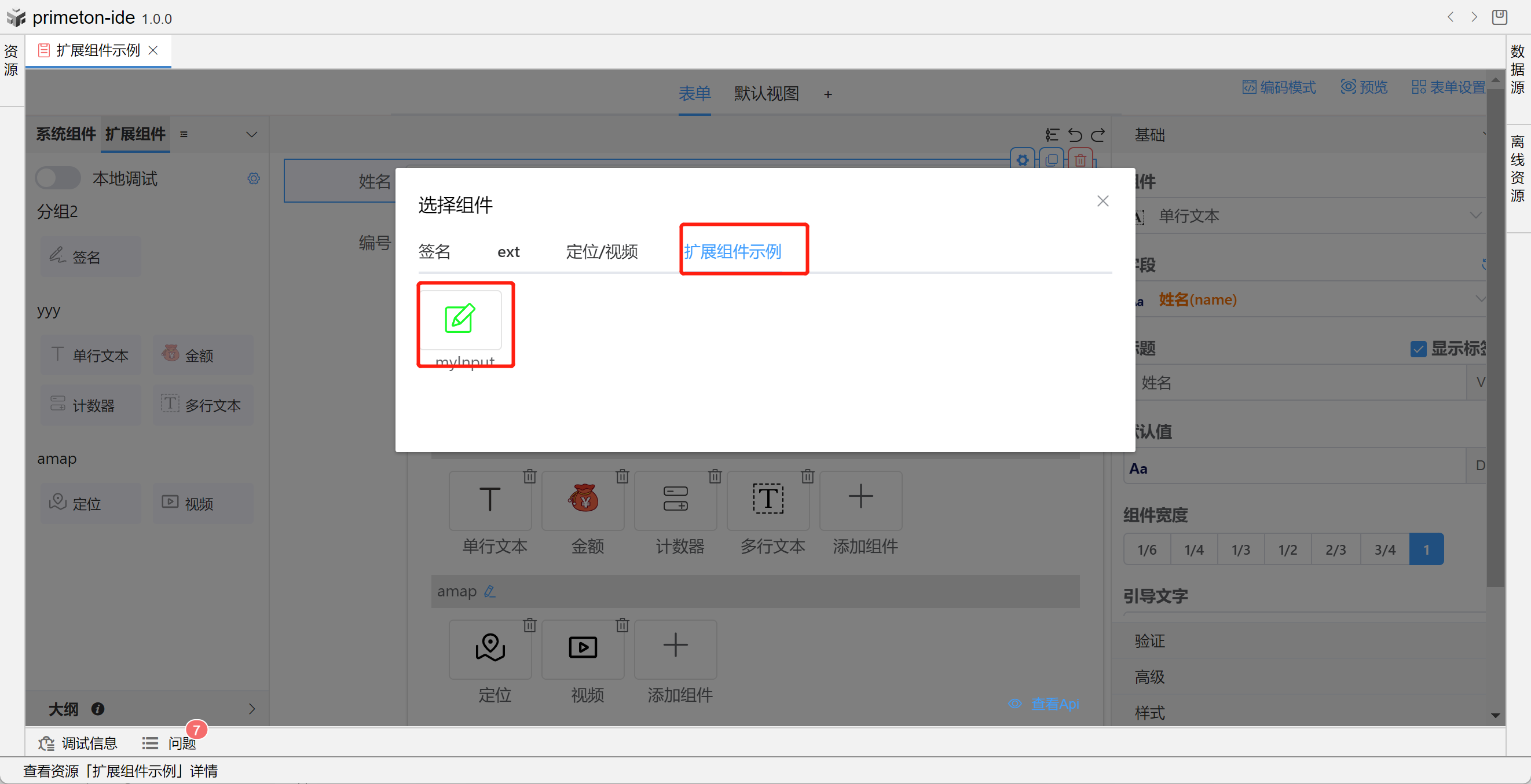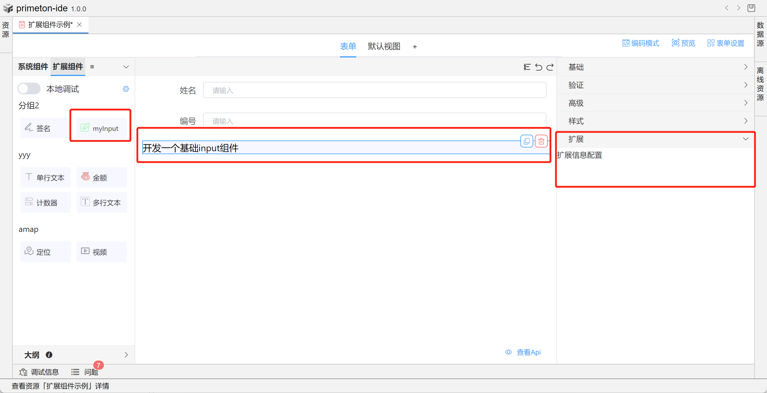 成功连接本地组件扩展项目后,可进行本地开发。本地项目更改保存后会实时更新到表单。