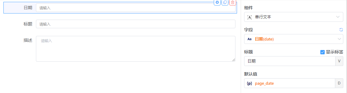 - 在表单设置处新建参数page_date,并赋给日期组件的默认值