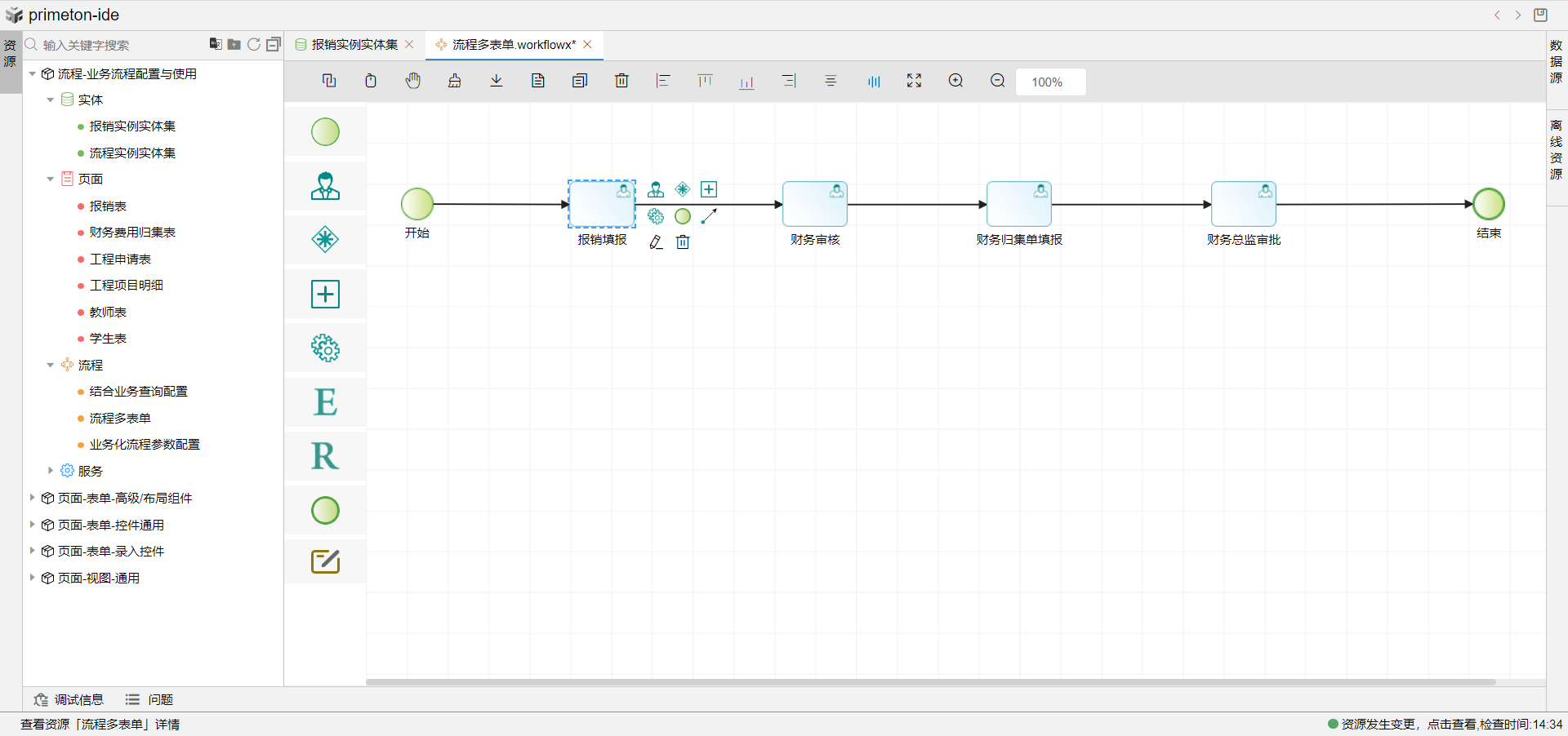 3.财务审核与财务总监审批环节图元只需配置报销表单与财务归集表单的查看状态即可完成流程多表单配置。