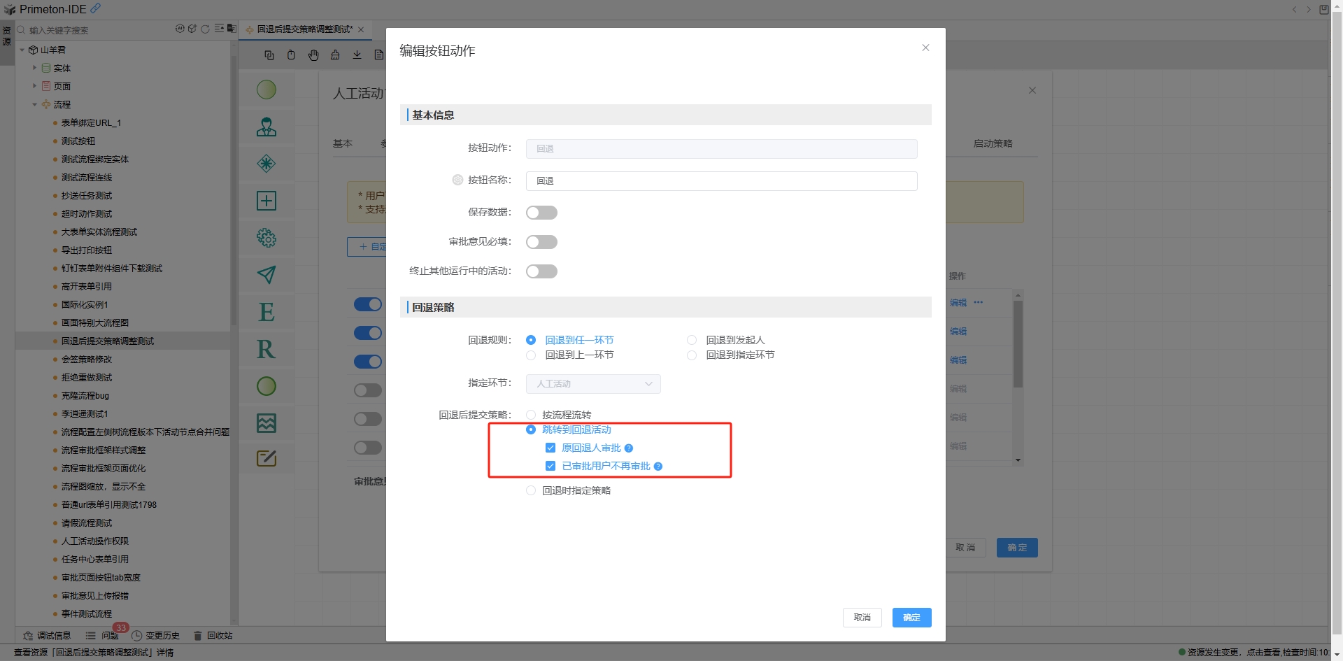 - 跳转到回退活动,分为以下两项,可选中其中一项,也可同时选中或都不选,共计四种选择情况。