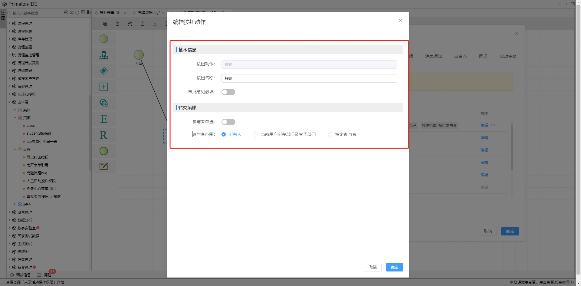 转交策略可以选择参与者范围