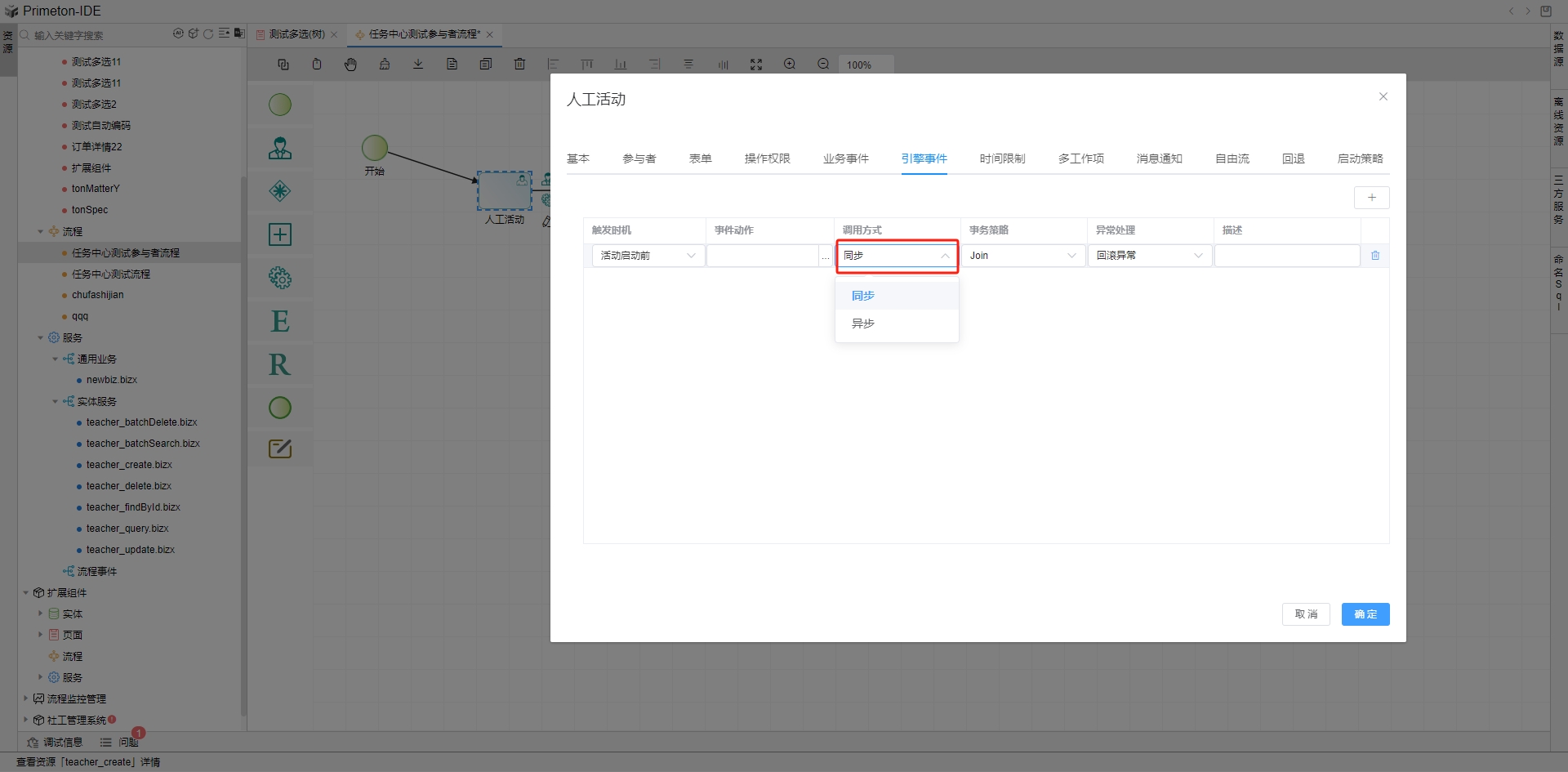 以人工活动配置为例,在引擎事件tab页即可设置触发事件。