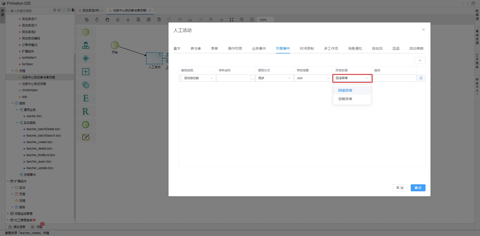 - 回滚异常:当事件动作执行过程中产生异常时,业务流程引擎回滚事务,异常在日志中进行记录。