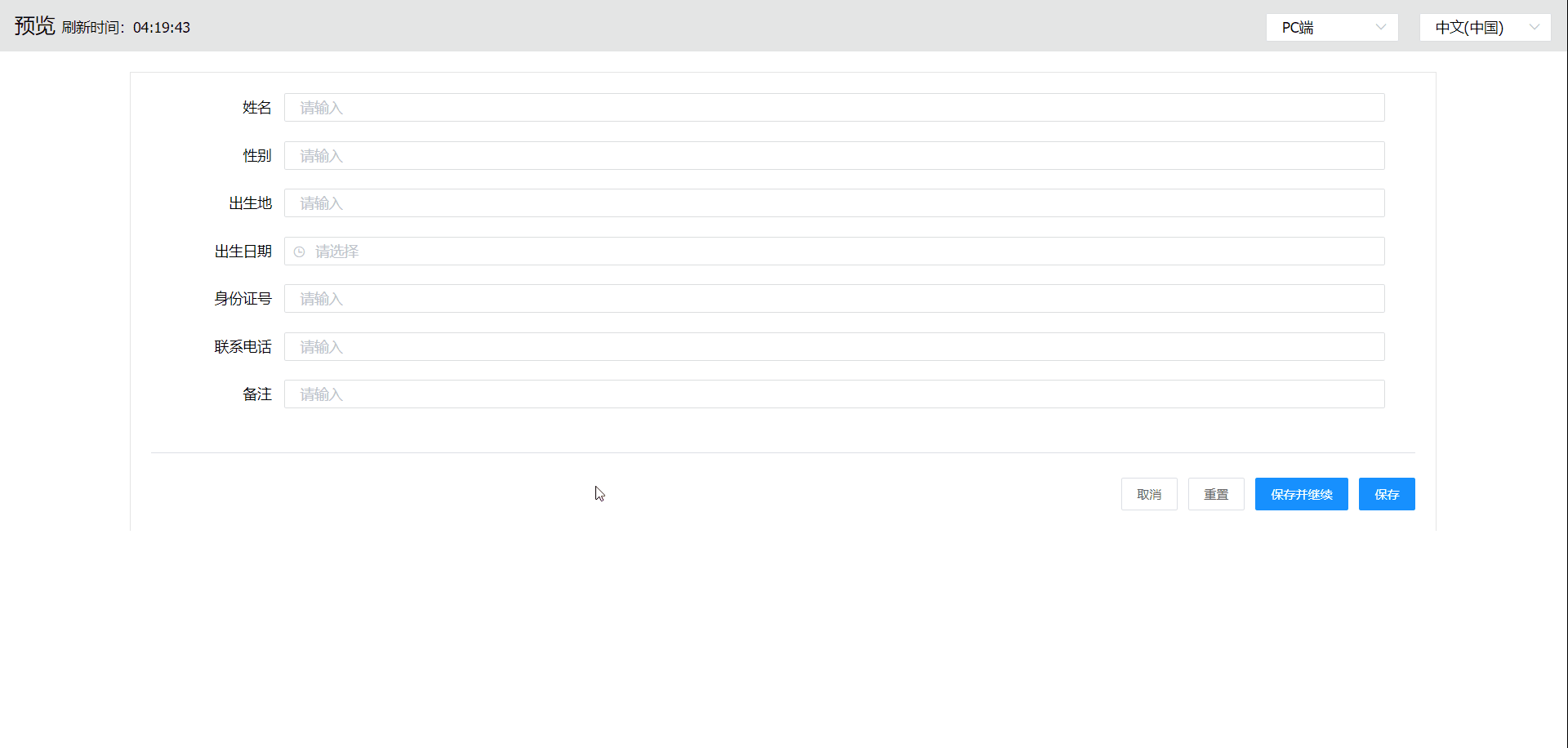 2.点击预览,填写出生日期距今大于25或小于等于0时,点击保存即可看到提示效果,并且没有触发保存操作。