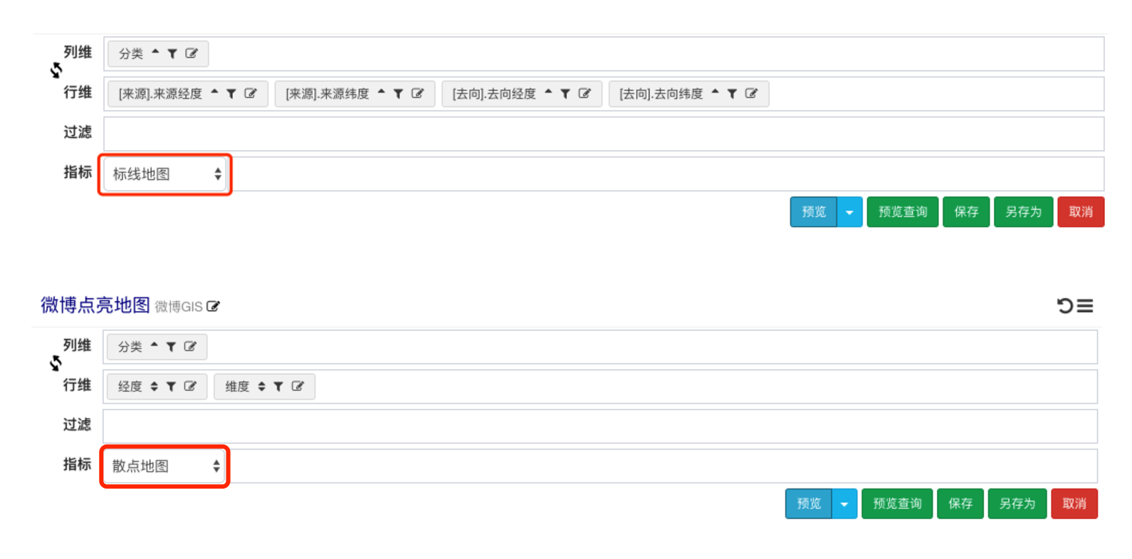 来源经度、来源维度、目标经度、目标维度,列维度放置分类
