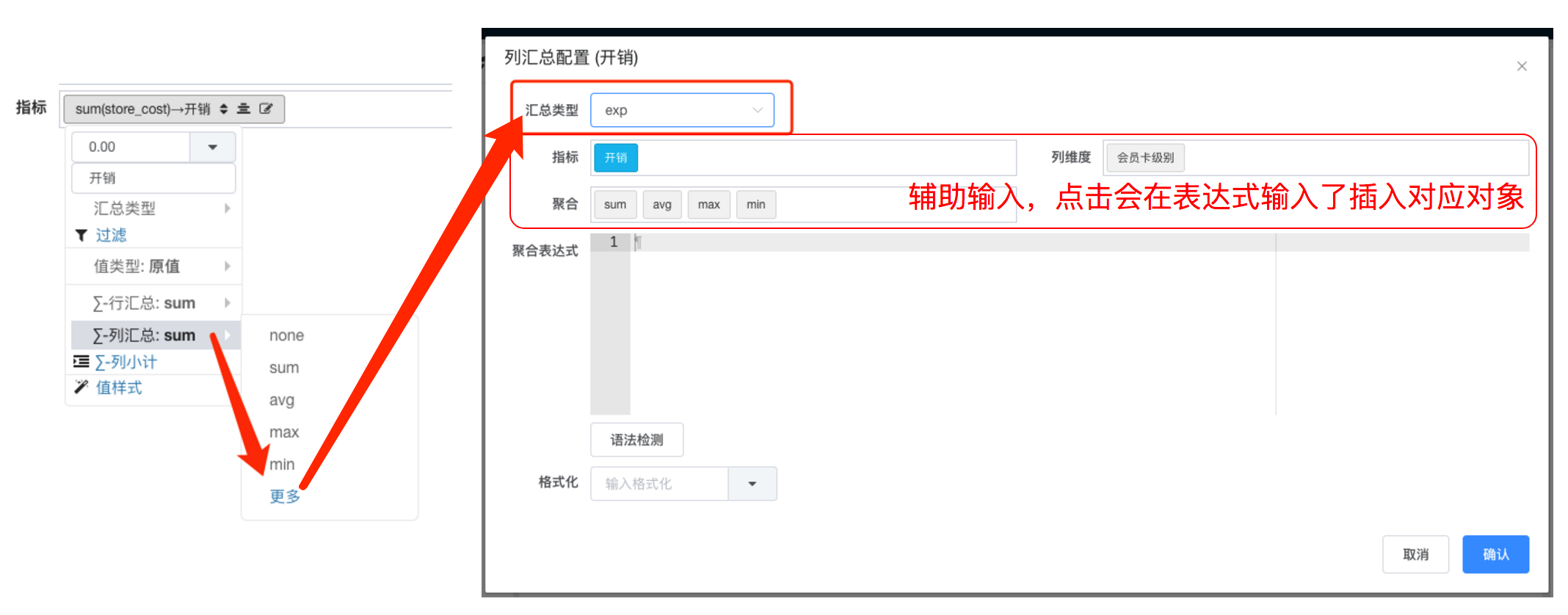 对于数据集表达式类型汇总,值类型增加原类型,在汇总粒度上沿用原来的汇总计算公式