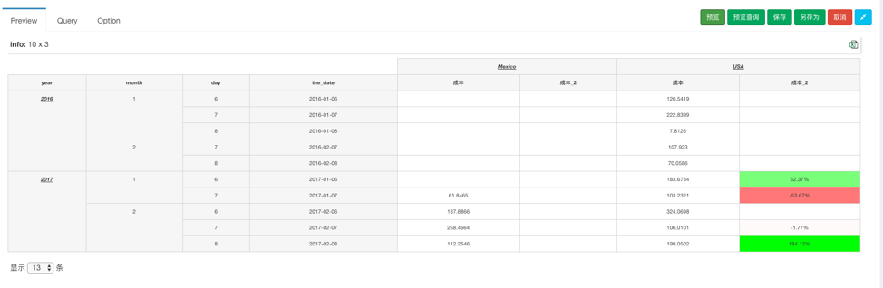 - 交叉表所有值类型计算与转换都是在表格已有值之上进行,不会对数据原进行额外的查询
