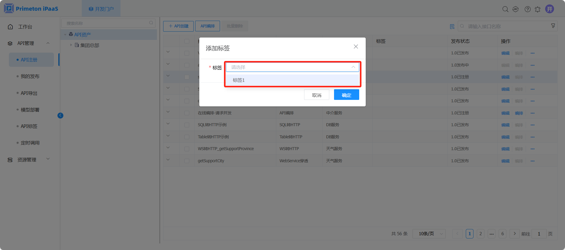 2. 选择需要为接口添加的标签,点击“确定”保存标签信息。