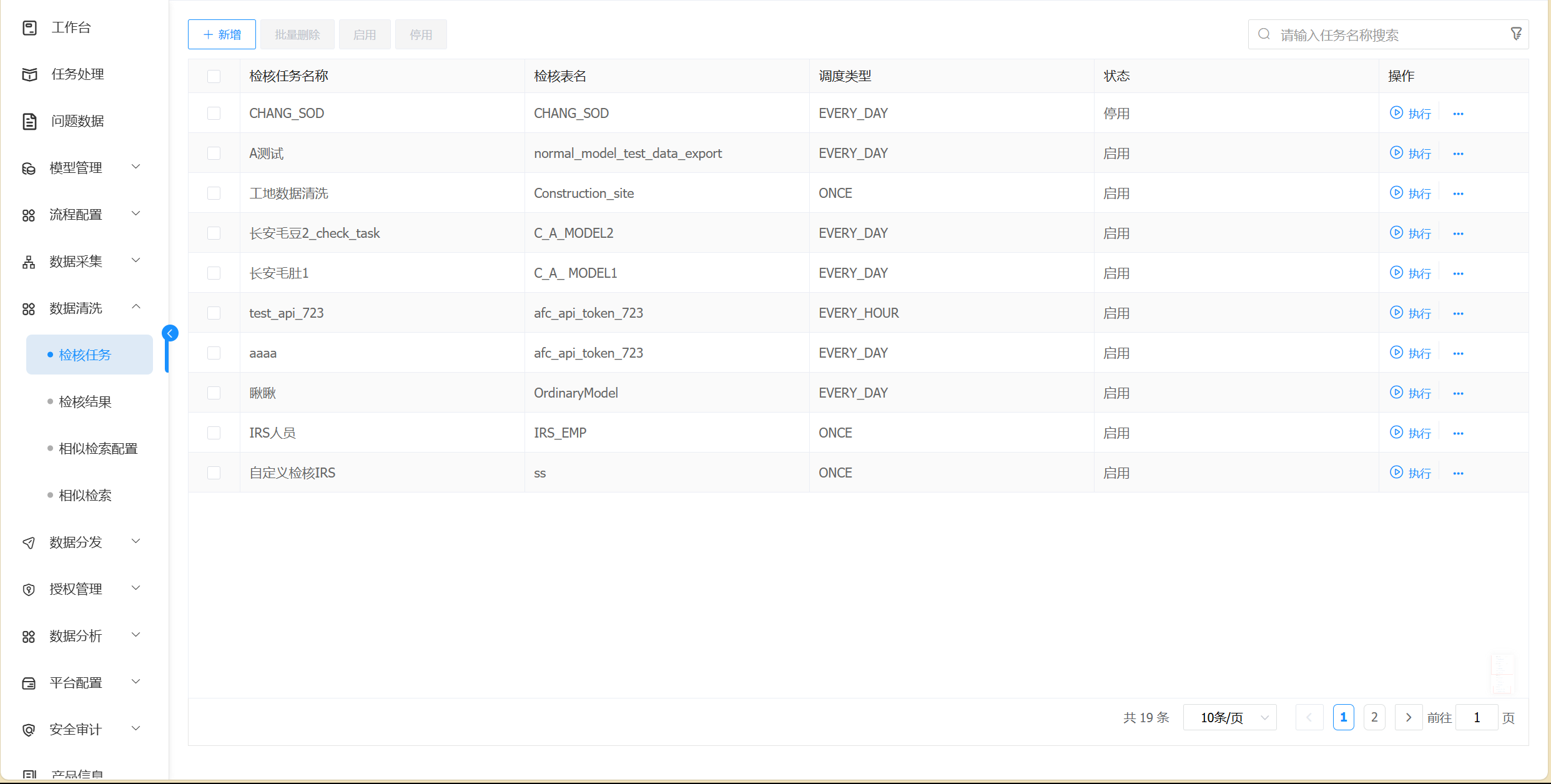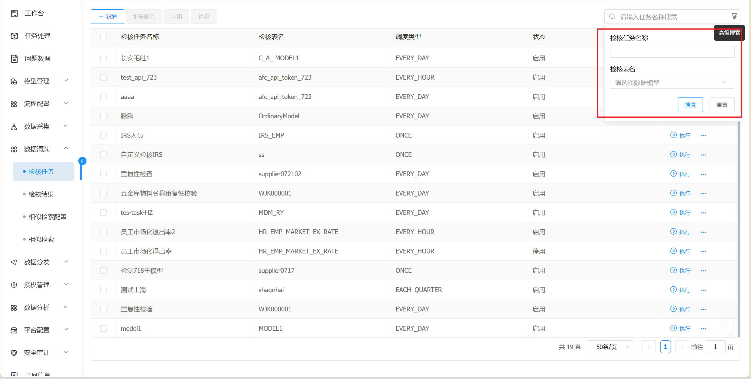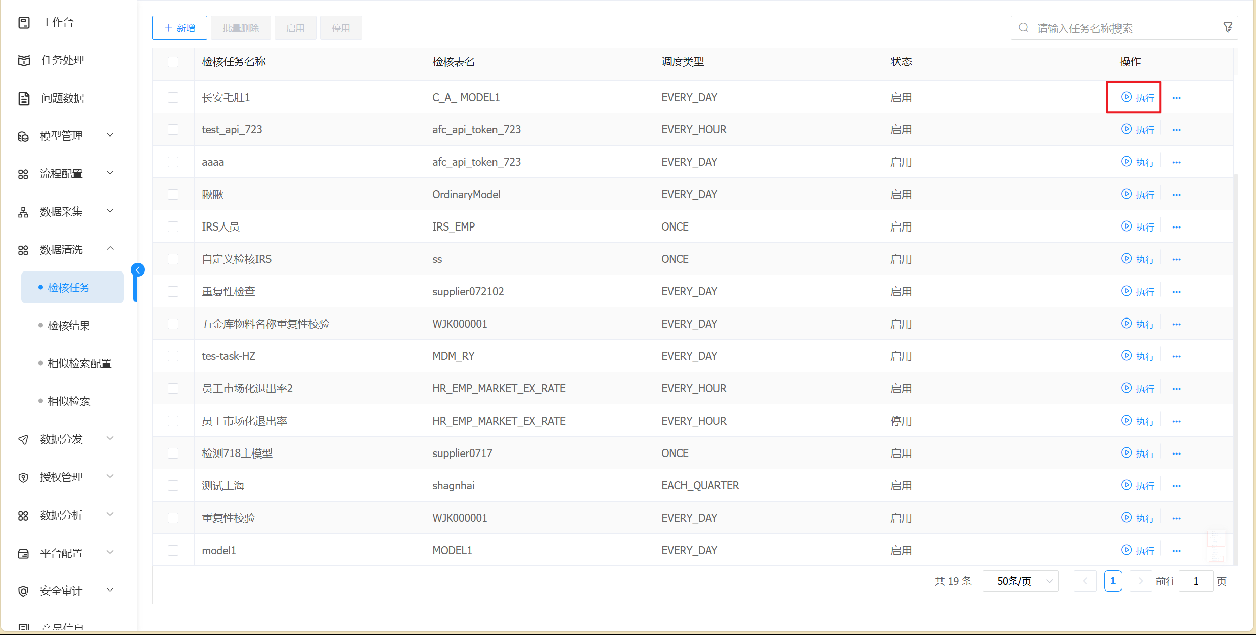 访问路径【主数据管理门户】→ 【数据清洗】→【检核任务】进入检核任务页面。