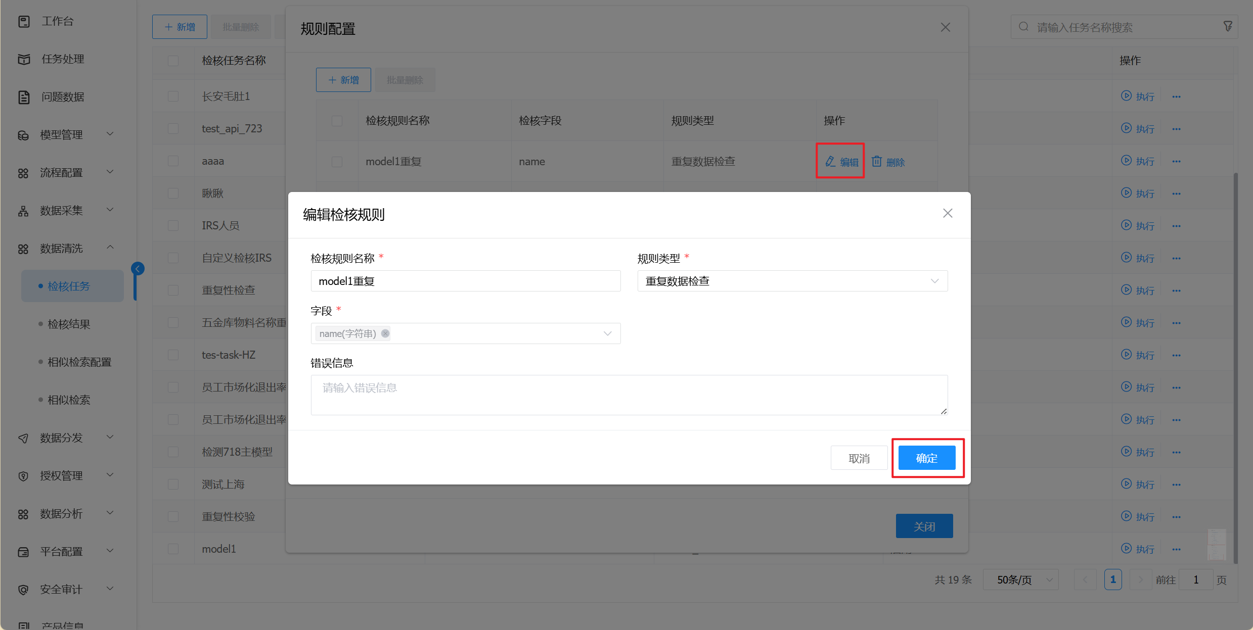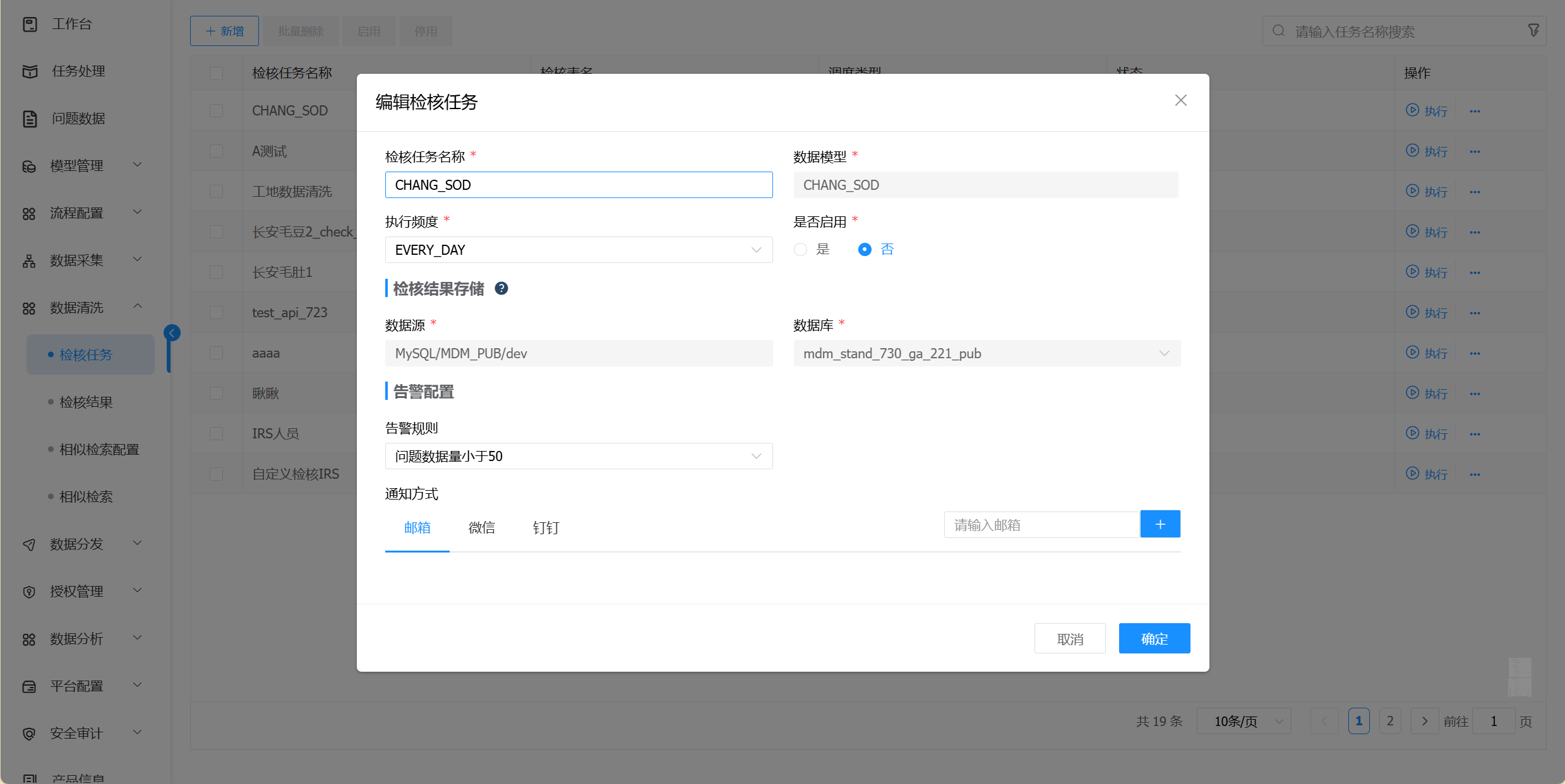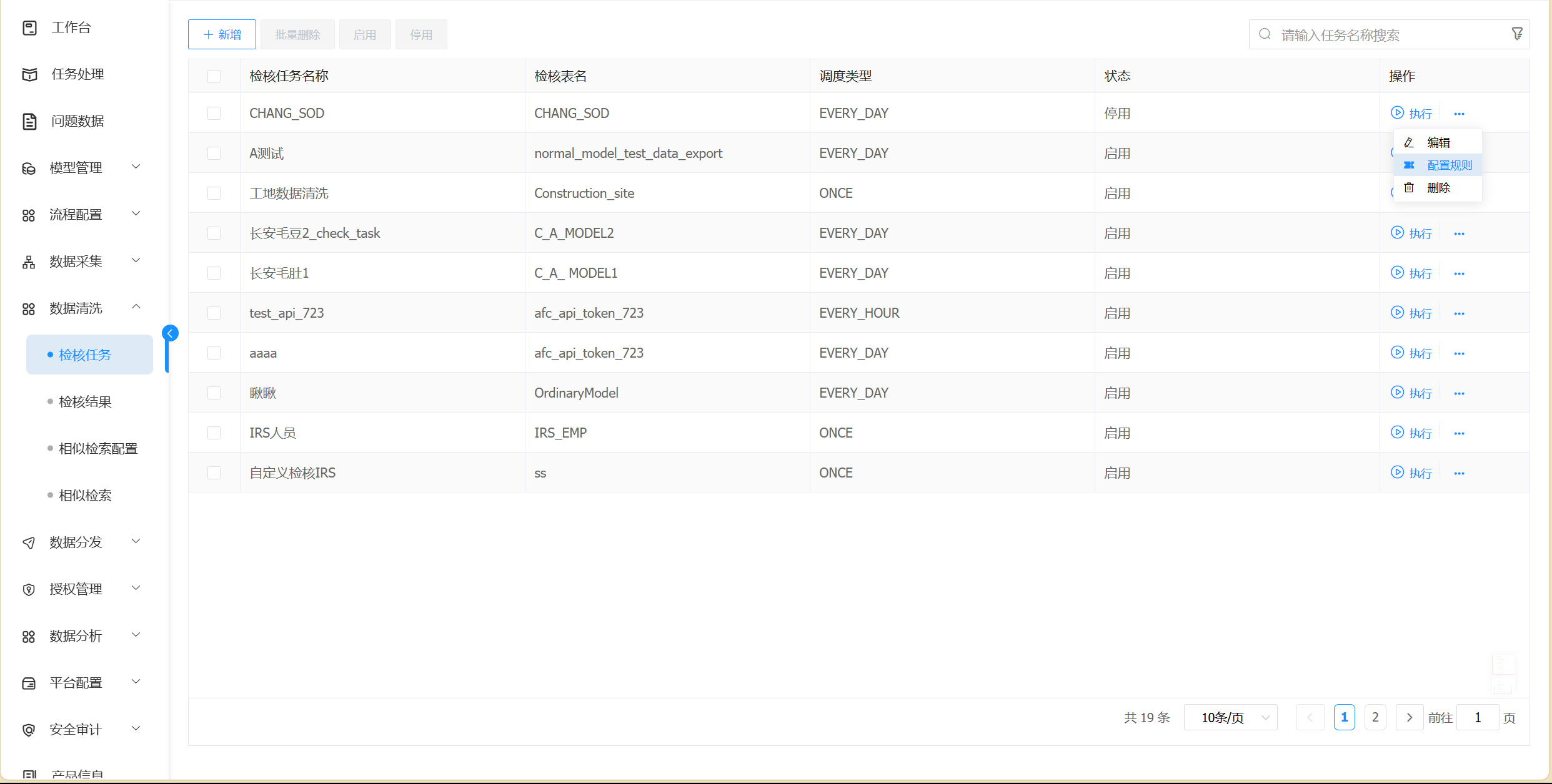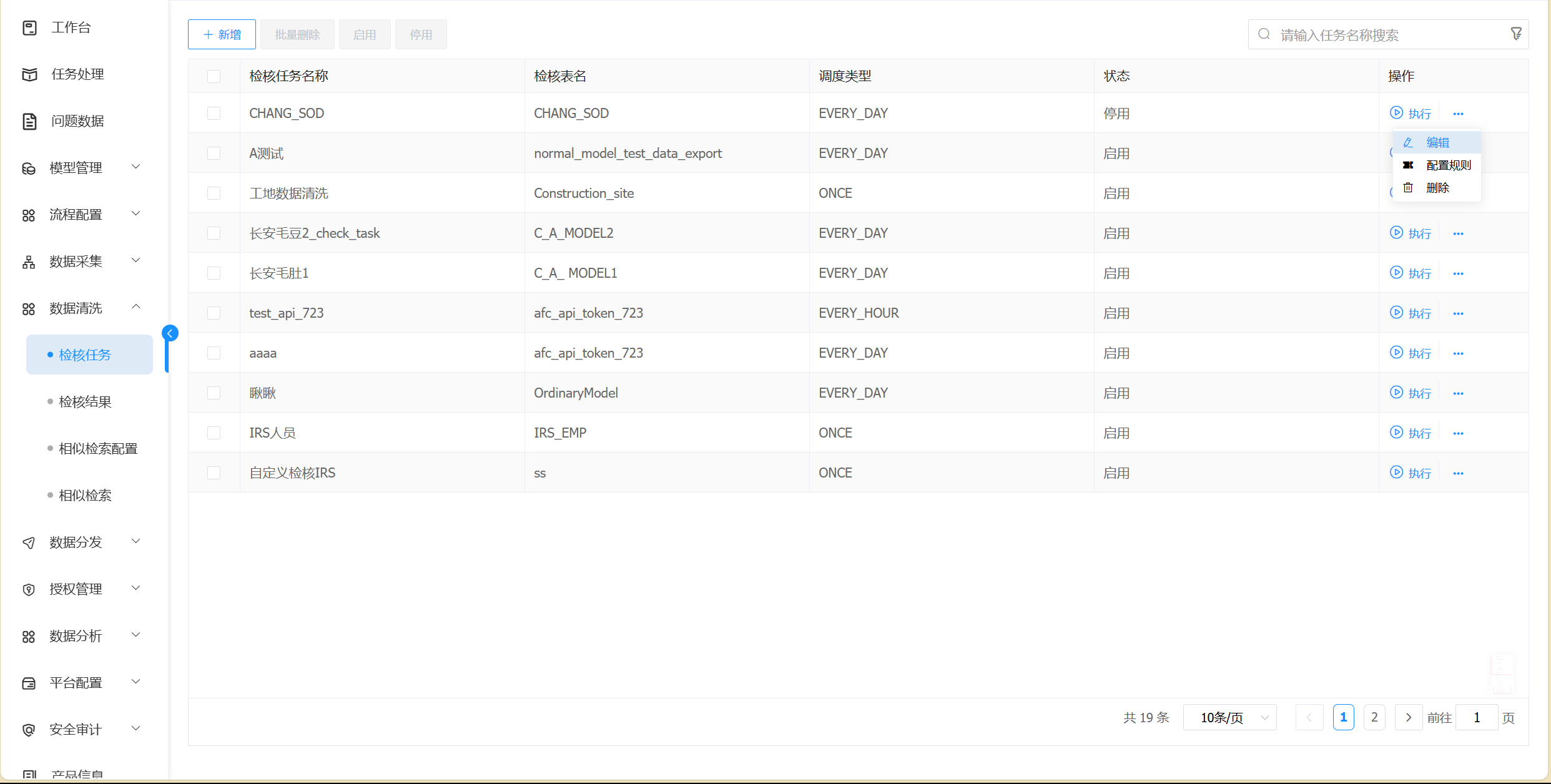 访问路径【主数据管理门户】→ 【数据清洗】→【检核任务】进入检核任务页面。