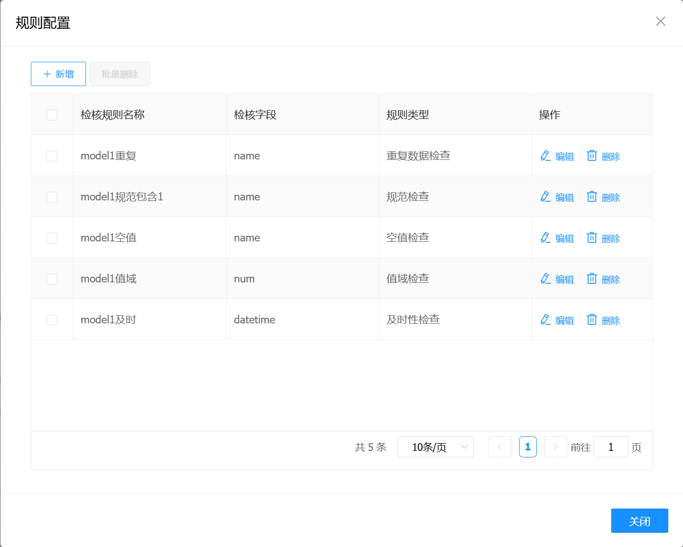 规则类型 | 规则类型:空值检查、值域检查、规范检查、重复数据检查、及时性检查。 |