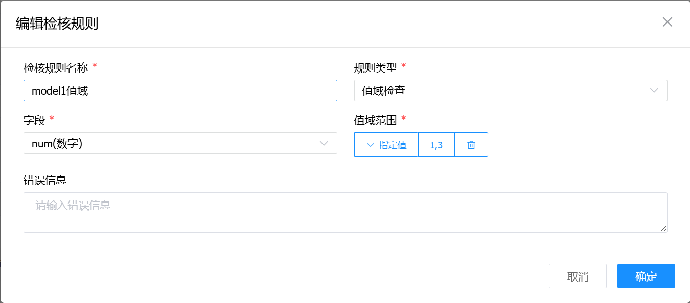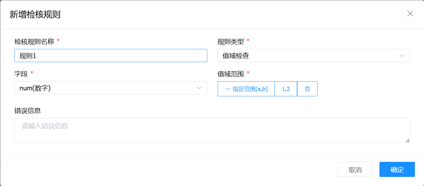 值域检查 | 检查目标字段的值是否在指定的取值范围内。 |