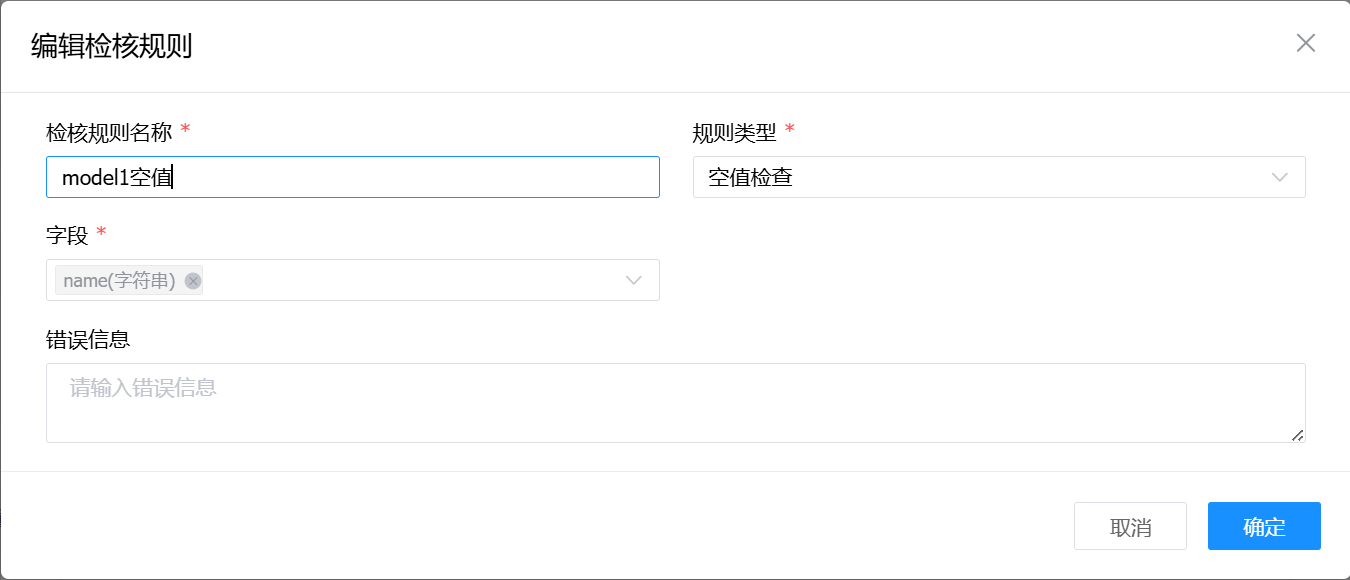 空值检查 | 检查目标字段的值是否为空,可以多个字段联合检查。 |