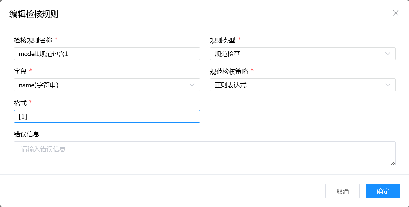 规范检查 | 检查目标字段的值是否符合指定的规范格式。 |