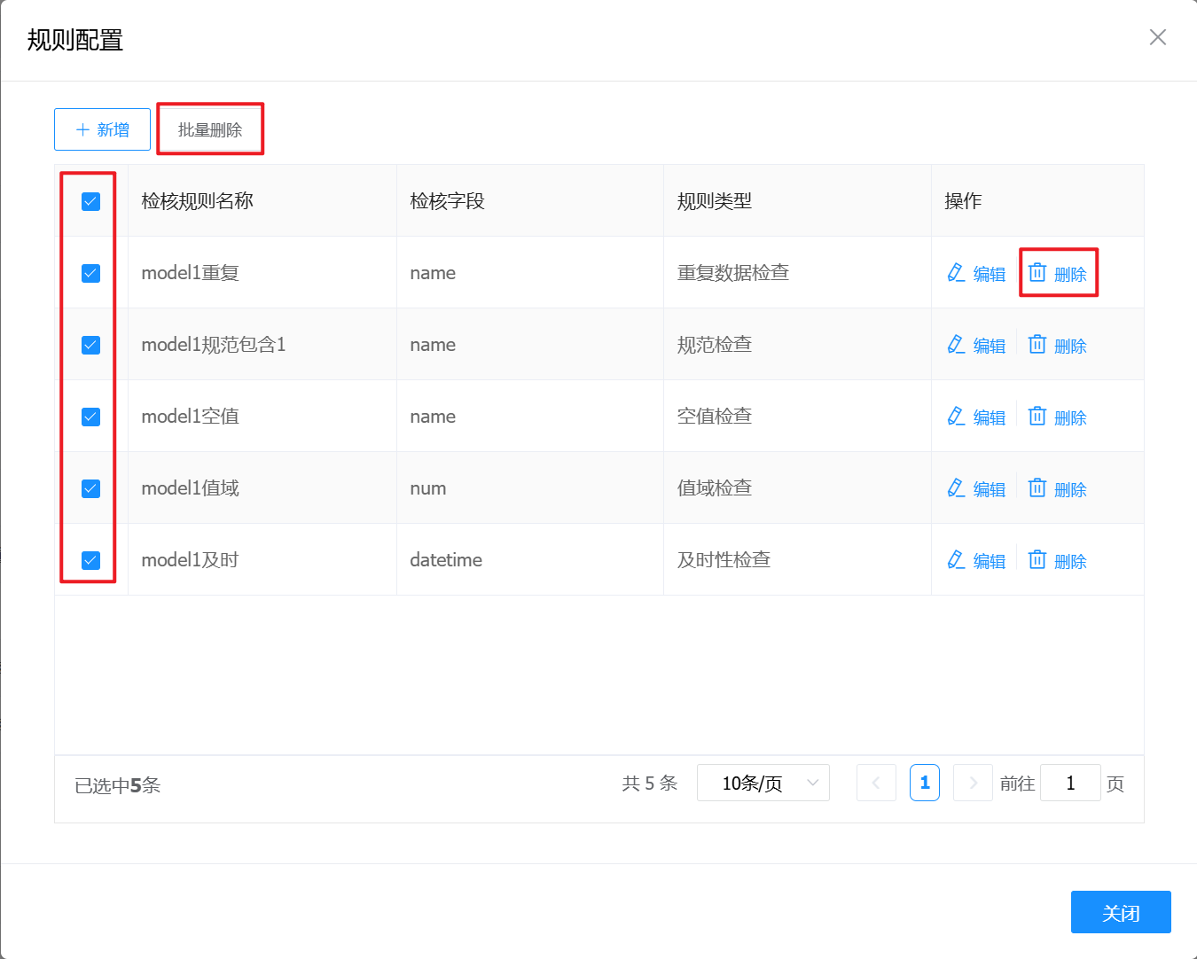 - 批量删除:勾选左侧多选框,选择删除进行批量删除