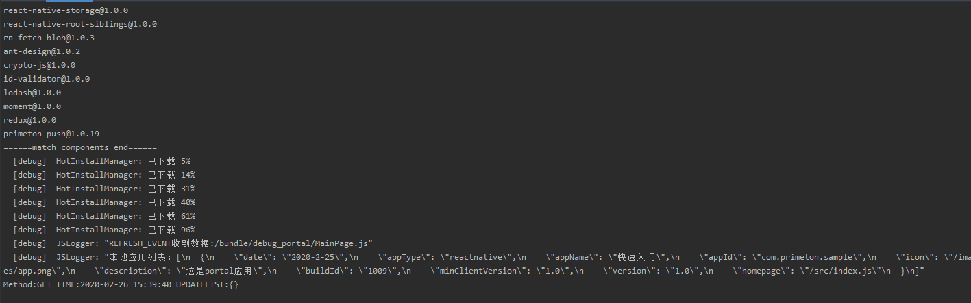 日志调试:应用在运行过程信息通过日志输出到调试服务窗口。