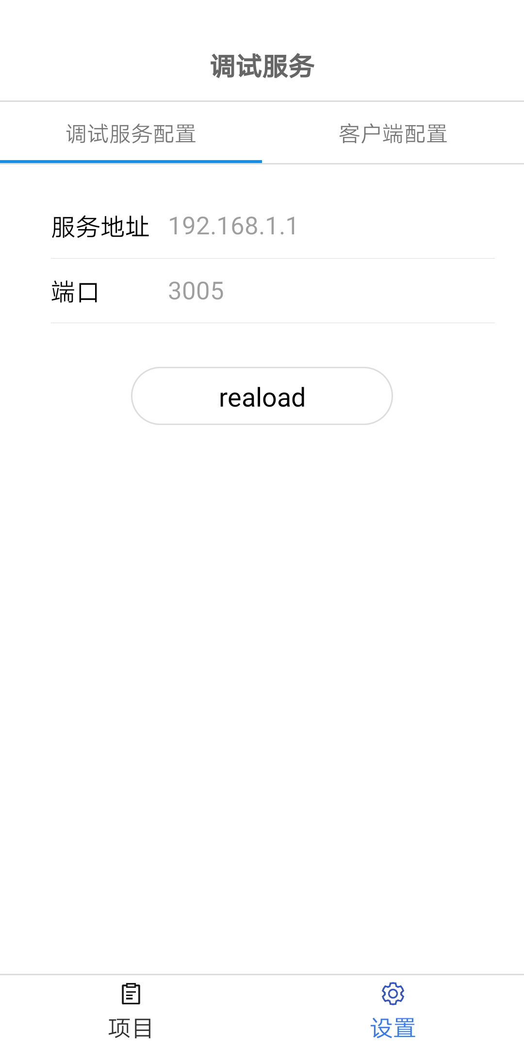 设置调试服务地址和端口之后,点击保存配置 (调试服务地址就是启动调试服务的那台机器的ip地址,在网络层面要保证手机和该服务能够联通。)