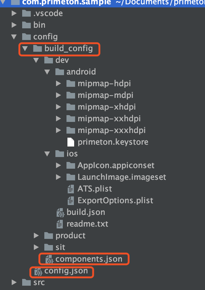 build.json:存放打包配置页面中APP信息页面的配置信息以及Android和iOS签名证书信息。