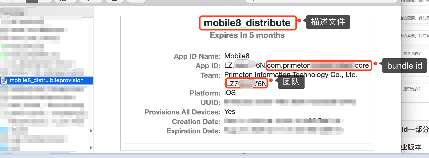 ios打包之前,证书和描述文件(mobileprovision)需要事先安装在mac上,双击安装即可
