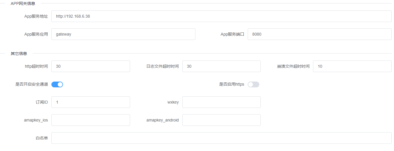 http超时时间 | APP端发送网络请求超时时间 | 单位为ms,如果APP端发送网络请求时间超过设置时间,网络请求会走失败回调,即使后面后台接口正常返回,app端也不会获取到后台返回数据 |