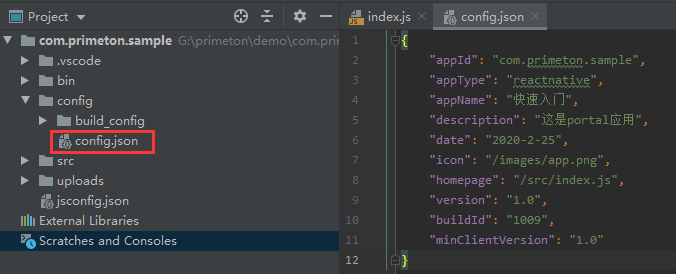 在项目config目录下有一个config.json文件可以配置应用相关信息